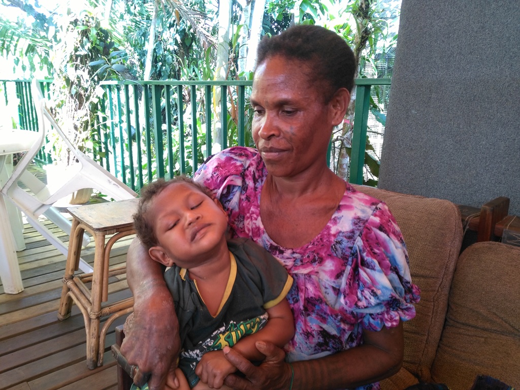 Miss Daisy of Alola village whose baby boy has been diagnosed with cerebraly palsy