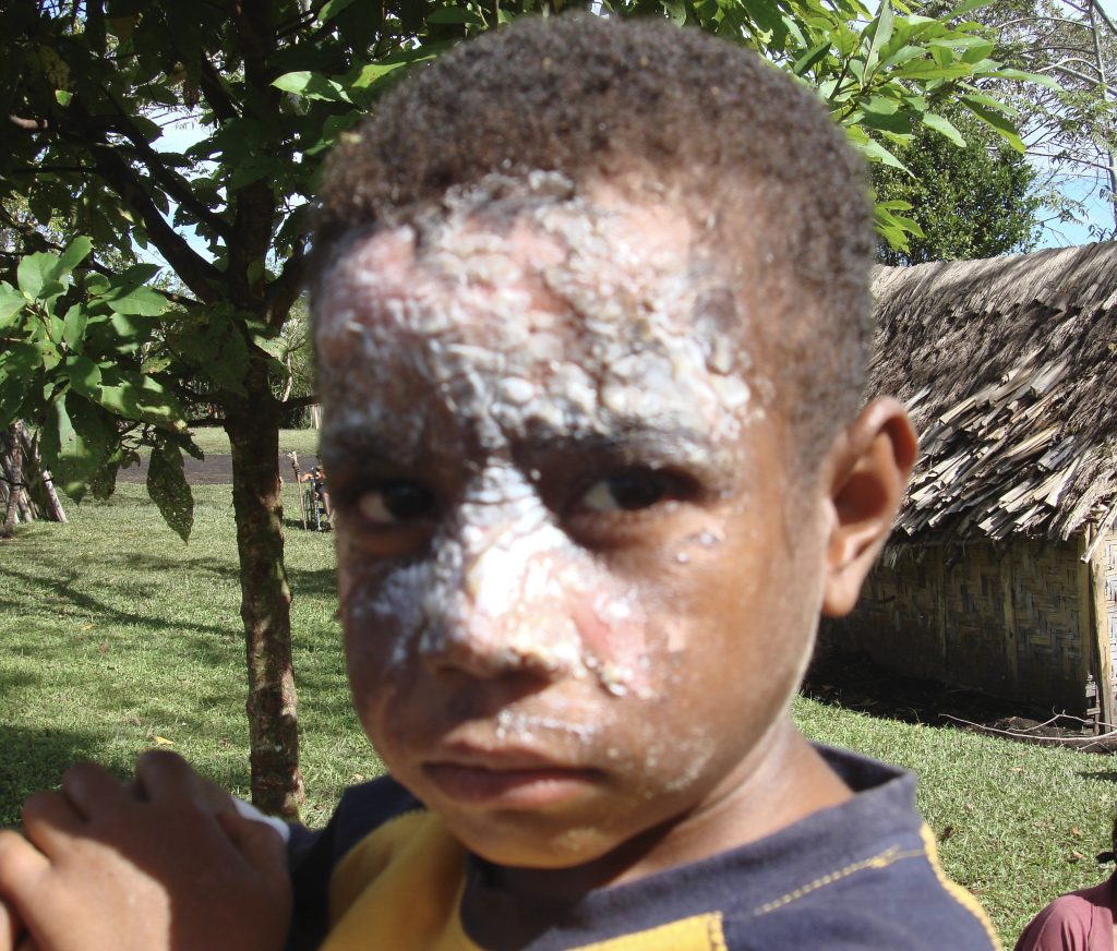 Young boy in Isurava village which does not have a health centre