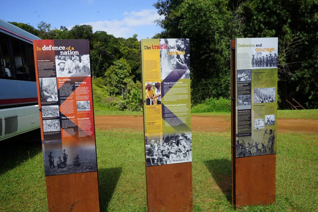 Inappropriate sign used by the Aid-funded ‘Kokoda Initiative’ to advertise itself – has no relevance to ‘tourism’ at the site!