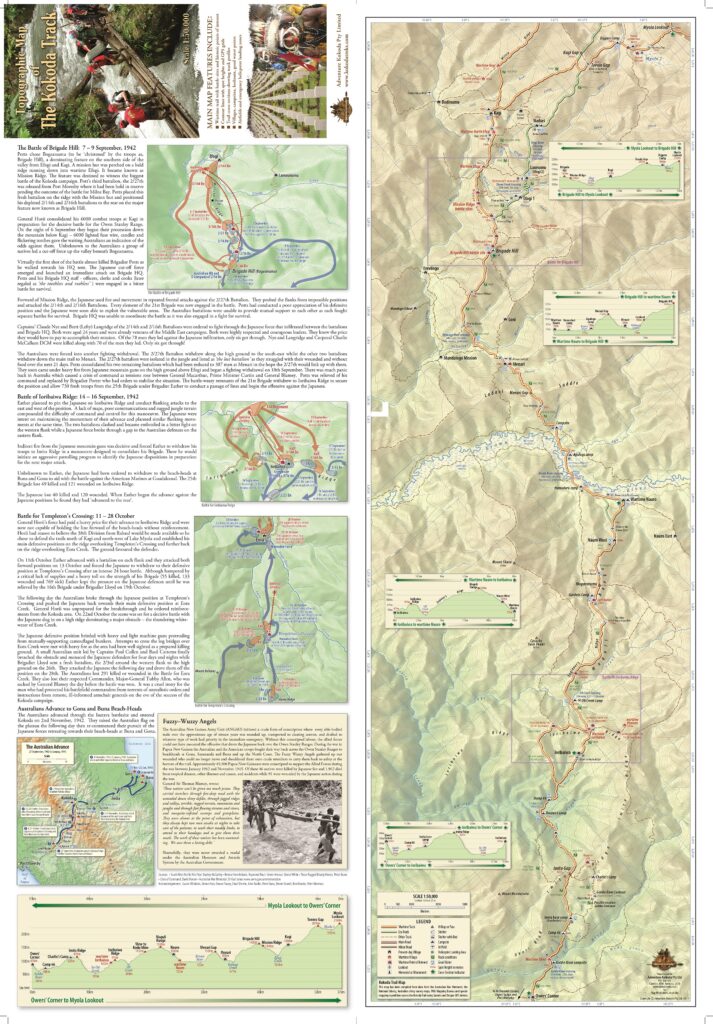 The introduction of GPS devices in the mid-1990’s partially solved the problem but did not overcome the shortcomings of such a large-scale map. However, it enabled us to verify key locations along the Trail, such as the Brigade Hill, Mission Ridge, and Isurava battle sites